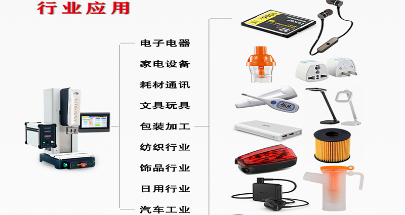 公司專(zhuān)業(yè)制造超聲波塑焊機(jī)、 高周波同步熔斷機(jī) 、超聲波口罩機(jī)、 超聲波切斷機(jī) 、超聲波無(wú)紡布縫合設(shè)備、 以及皮革沖孔機(jī)械等10多個(gè)系列100多種機(jī)型,同時(shí),還能為客戶(hù)量身定制各種非標(biāo)專(zhuān)用設(shè)備,充分滿(mǎn)足不同客戶(hù)對(duì)產(chǎn)品個(gè)性化需求。服務(wù)領(lǐng)域包括汽車(chē)、 電子、 醫(yī)療衛(wèi)生 、玩具 、服裝、 包裝、 辦公用品 、家居用品 、酒店用品等行業(yè)。 ...
